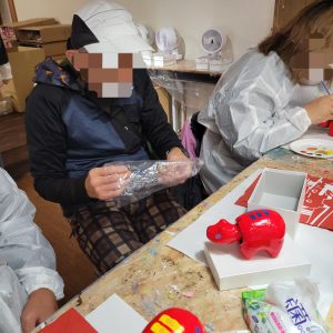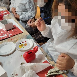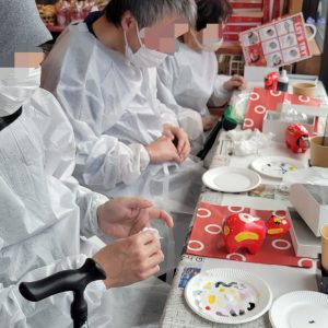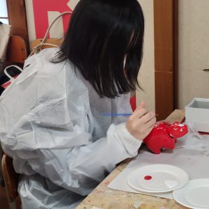 さっそく1階と2階に分かれて「赤べこ」の絵付け体験の始まりです。
